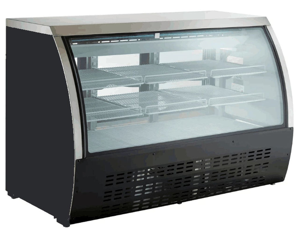 The Admiral Craft USDC-64 is a premium refrigerated deli case designed for showcasing and storing deli meats, cheeses, and other perishable items. With a 64-inch width and 21.9 Cu.Ft. of storage capacity, this unit is perfect for delis, grocery stores, and cafes. Its curved glass front enhances product visibility, while its high humidity gravity coil refrigeration system ensures optimal freshness. The sleek rounded corners and durable construction allow for easy cleaning and a polished, professional appearance.