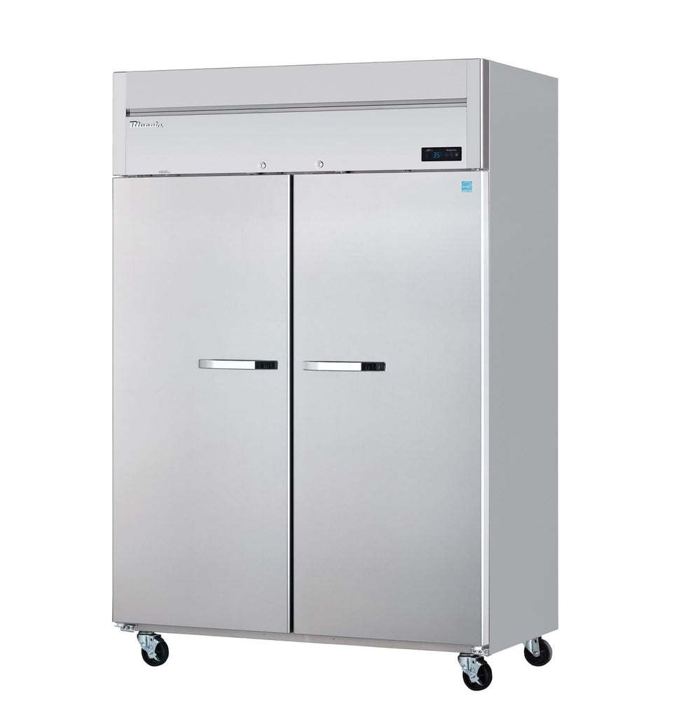 The Blue Air BSR49T-HC is a 49 Cu. Ft., 54-inch, 2-door top-mount reach-in refrigerator designed for commercial kitchens, bars, and foodservice operations that require substantial refrigeration capacity in a durable and efficient unit. The top-mounted compressor ensures both energy efficiency and easy maintenance access, while the hydrocarbon refrigerant (R-290) reduces the environmental impact by improving energy efficiency by up to 25%.
