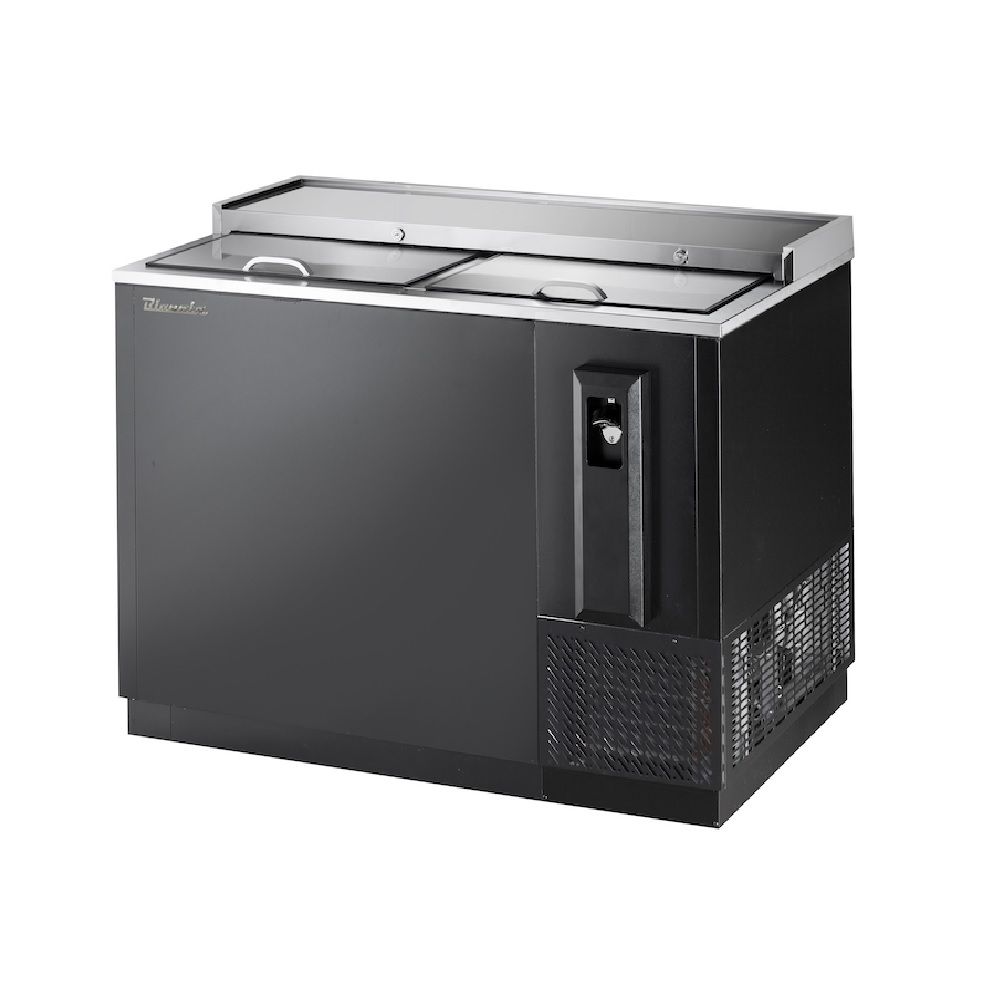 Blue Air BBC-50B-HC, 50-inch Black Horizontal Bottle Cooler with Sliding Top Lid, 14.8 Cu. Ft.