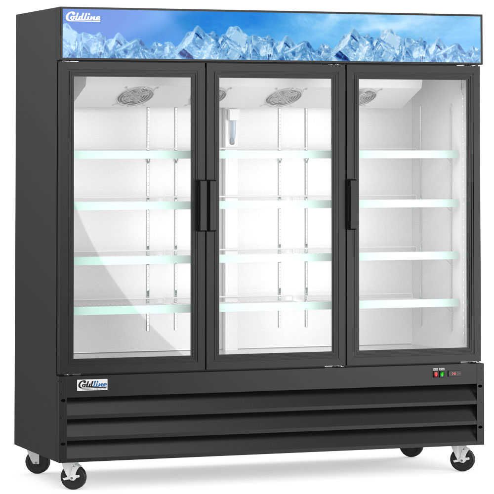 Coldline D80-B, 79-Inch Three Glass Door Black Merchandiser Freezer with LED Lighting