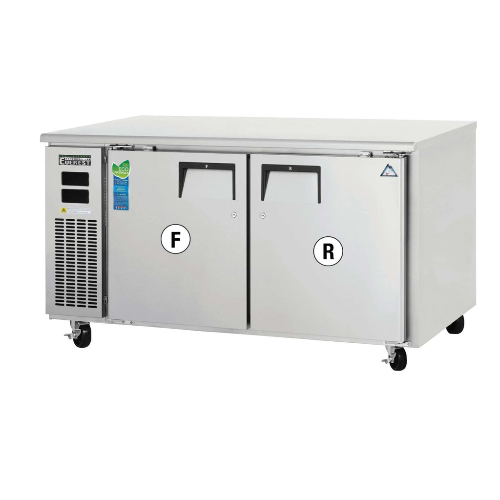 The Everest ETRF2 offers a reliable and space-efficient solution for businesses needing both a refrigerated and frozen storage solution with the added benefit of a work surface. This model is ideal for foodservice operations, offering durability, versatility, and convenience in a compact package.