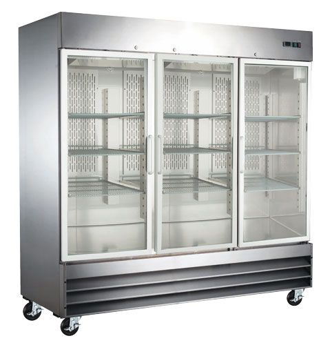 Omcan RE-CN-0067-G-HC, 81-inch 3 Glass Doors Stainless Steel Refrigerator, 66.5 Cu.Ft