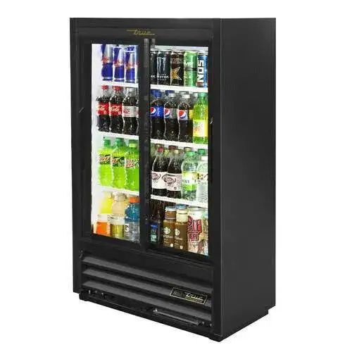 True GDM-33SSL-56-HC-LD, 36-Inch Black Wide Narrow-Depth 2-Section Glass Sliding Door Merchandiser Refrigerator, 115V