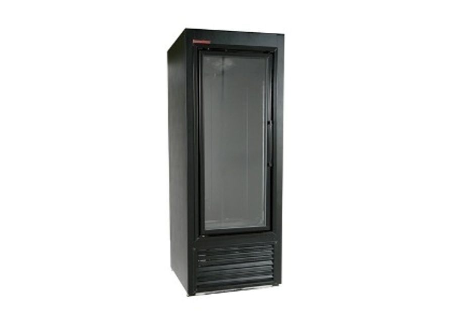 Universal Coolers ADM-1-SCB 30x30x78-Inch Beverage Merchandiser, Glass Swinging Anthony Door, Black Exterior, Self-Contained