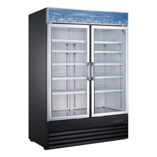 - Two self-closing, anti-fog double-pane insulated glass doors provide clear visibility and maintain optimal temperature.