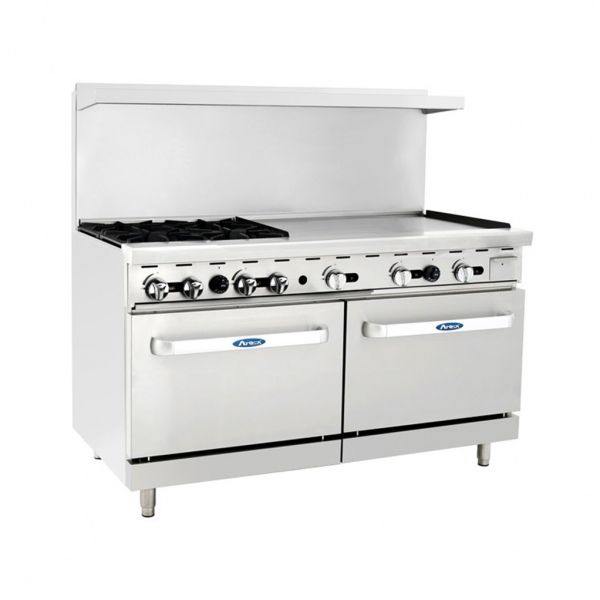 Upgrade your kitchen with the versatile Atosa CookRite AGR-4B36G 60-Inch Gas Range, combining a spacious double oven, four burners, and a 36-inch griddle for a variety of cooking applications. Designed for high-performance cooking, this stainless steel range is perfect for restaurants, cafeterias, and commercial kitchens.