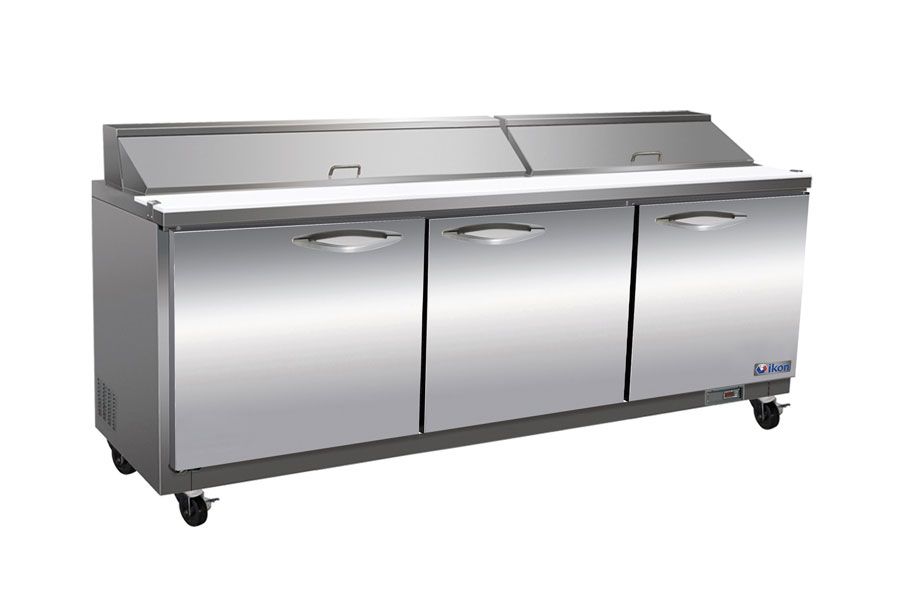 IKON ISP72 72-inch Triple Door Standard Top Refrigerated Sandwich/Salad Prep Table, 18 Pans