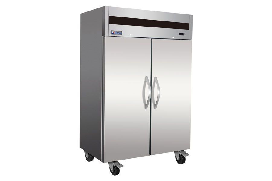 IKON IT56R 2 Solid Doors Upright Top Mount Refrigerator is a reliable piece of professional kitchen equipment built for commercial aims. Thanks to durable construction and adjustable temperature control, it creates optimal conditions for products storage. Classic silver design with rounded corners and easy-to-clean recessed door handles adds to the overall kitchen interior.