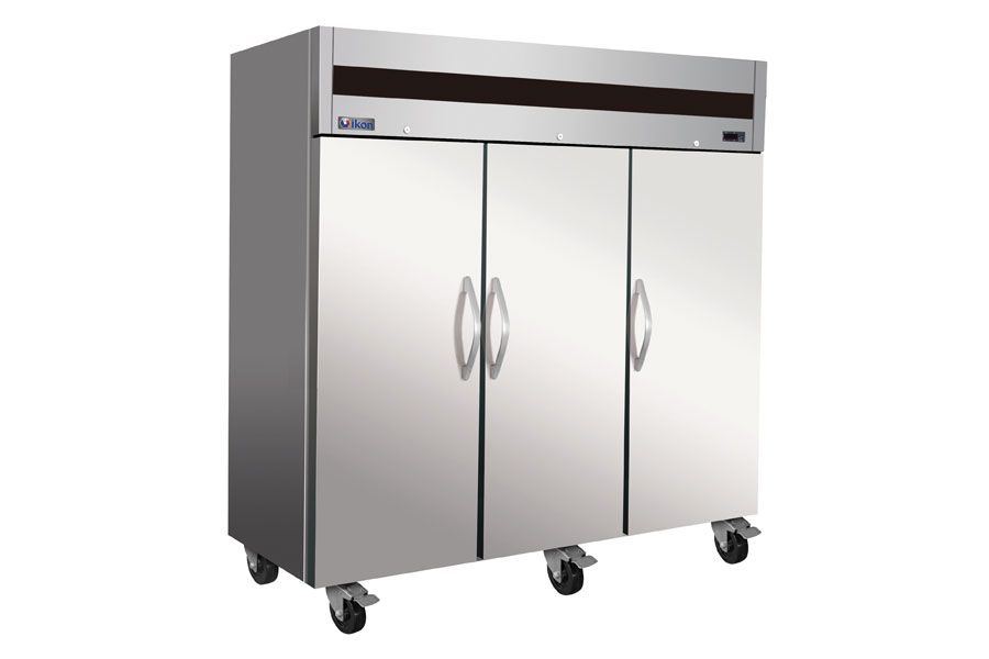 IKON IT82R 3 Solid Doors Upright Top Mount Refrigerator is a reliable piece of professional kitchen equipment built for commercial aims. Thanks to durable construction and adjustable temperature control, it creates optimal conditions for products storage. Classic silver design with rounded corners and easy-to-clean recessed door handles adds to the overall kitchen interior.