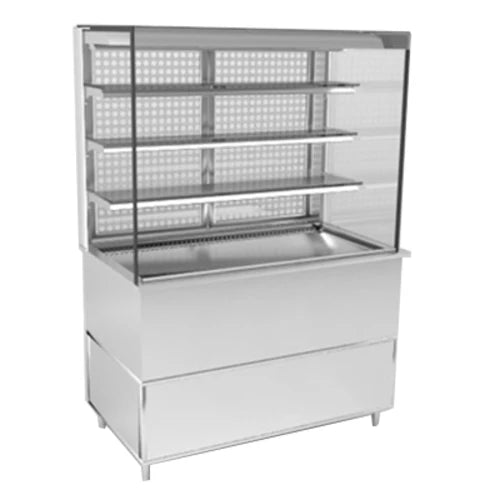 Vienna Grab-N-Go Display Case, 44-1/4" W, freestanding or slide-in, self-contained refrigeration, self-service, programmable digital refrigeration controller, top canopy LED light, square glass profile, (3) adjustable glass shelves with LED lights, insulated glass top & side panels, stainless steel exterior, hinged rear see-thru access doors, 7/8 hp, cETLus, ETL-Sanitation