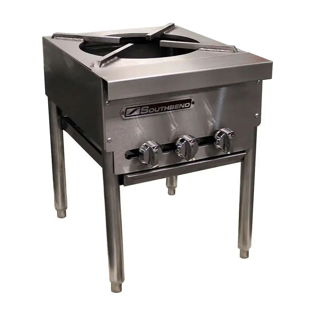 The Southbend SPR-1J Gas Stock Pot Range is ideal for high-volume cooking in restaurants, catering, and foodservice environments, offering reliable heating power and durability.