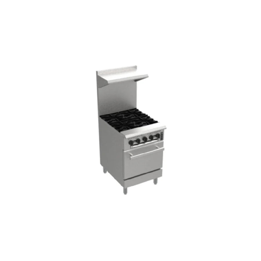 The Venancio PRO24G-ST _LP Prime Restaurant Range Gas 24"W is a powerful and versatile cooking appliance designed for professional kitchens. It features four open burners with cast iron top grates, each equipped with independent manual control valves, allowing precise temperature management for a variety of cooking techniques. This unit is complemented by a standard oven with a snap action thermostat, ensuring consistent and efficient cooking results. The oven's double-sided enamel cavity includes one rack and three shelf positions, accommodating different dish sizes and cooking needs. The range is equipped with a 25"H back guard featuring an over shelf, providing additional storage and workspace. The front rail adds convenience, and the stainless steel front, sides, and removable crumb tray contribute to easy maintenance and durability. With a counterweight balanced door and 6" adjustable legs, the range is stable and adaptable to different kitchen layouts. Operating at 130,000 BTU, it delivers substantial heating power. Certified by cULus and UL EPH, the Venancio PRO24G-ST _LP ensures compliance with rigorous safety and sanitation standards. This range is an ideal choice for restaurants seeking robust functionality and reliable performance in a compact 24"W footprint.
