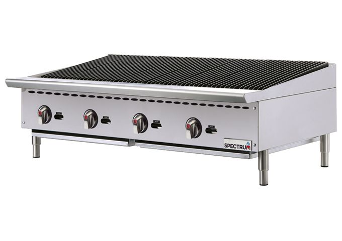 Achieve perfect grill marks and mouthwatering chargrilled flavors with the Winco NGCB-48R 48-Inch Wide Spectrum Gas Charbroiler. Designed for high-volume cooking in burger joints, restaurants, and cafeterias, this robust gas charbroiler delivers powerful performance and is built for durability and convenience.