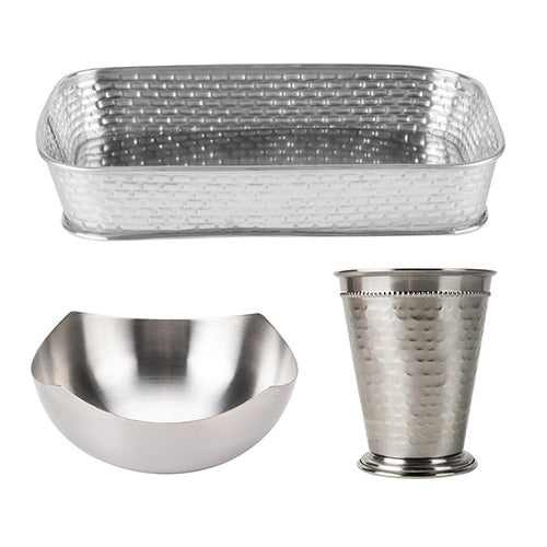 Metal dinnerware is both visually appealing and durable, making it a smart choice for any food service business.