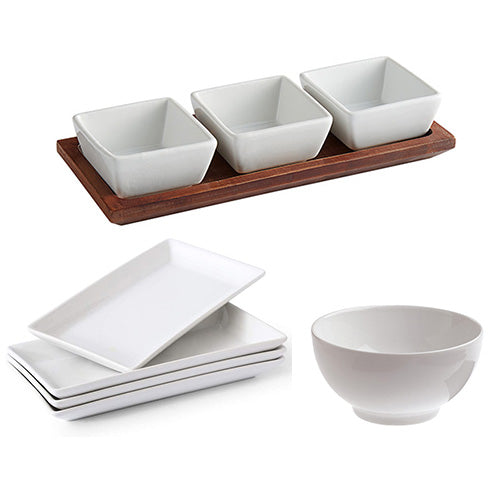Dress up your table with serving accessories like tasting platters, sugar caddies, and salt and pepper shakers.