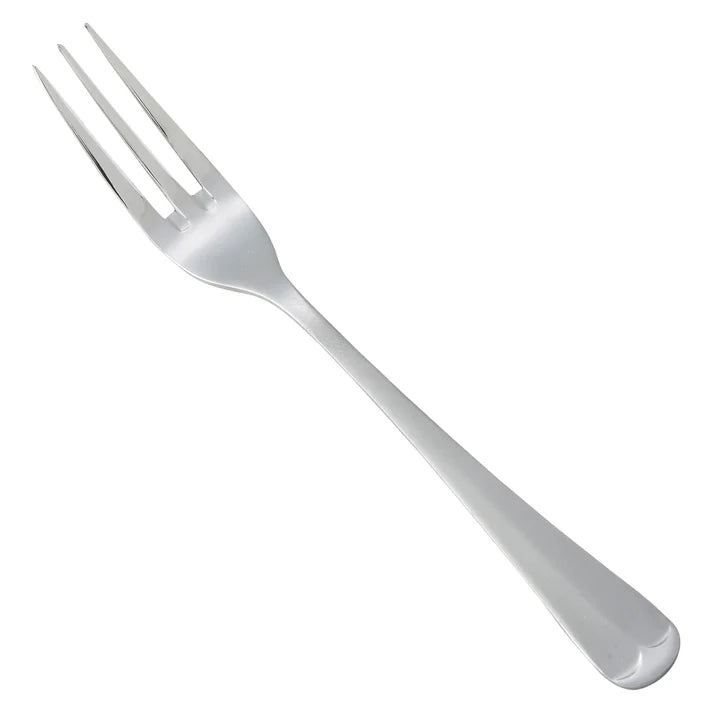 Create an elevated table setting with this commercial-grade 7" salad fork, part of the Lafayette flatware collection by Winco. This specially designed salad fork features wide tines to provide additional leverage for cutting and spearing large vegetables and leafy greens. The Lafayette flatware collection features ridged handles with double scalloped accents ideal for everyday use. Forged from heavy-duty stainless steel, this heavyweight salad fork is designed to withstand daily use in a commercial foodservice environment making it an ideal choice for hotels, cafes and restaurants. Each piece of the Lafayette flatware collection is dishwasher safe for both residential and commercial dishwashers. The elegant mirror finish is designed to last and is resistant to pitting or dulling, even after repeated washes.