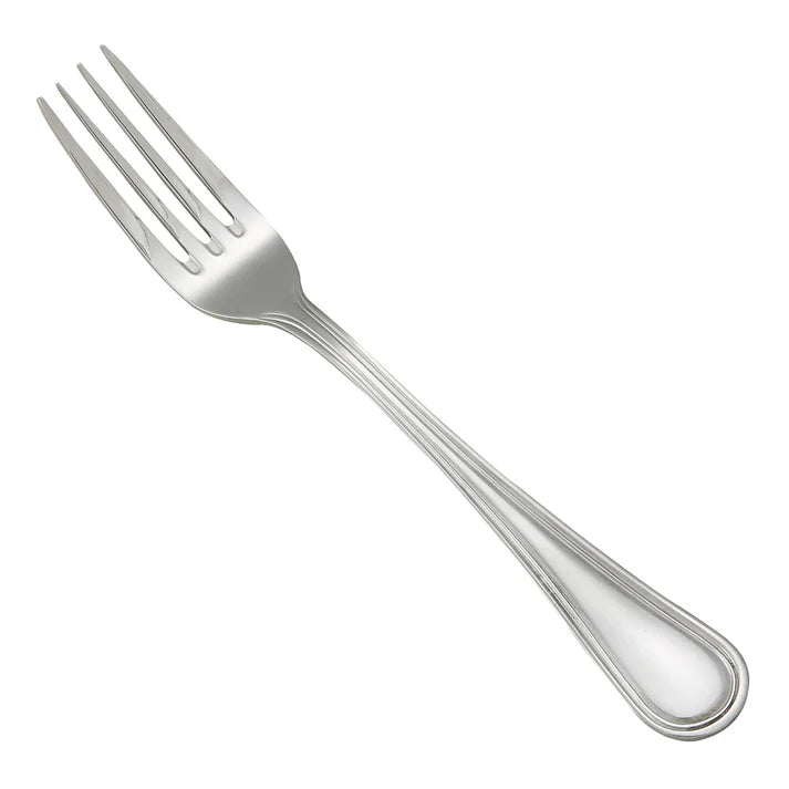 Create an elevated table setting with this commercial-grade salad fork, part of the Continental flatware collection by Winco. This specially designed salad fork features wide tines to provide additional leverage for cutting and spearing large vegetables and leafy greens. Featuring simple lines and elegant contours, the Continental flatware collection is versatile and ideal for use in restaurants, hotels and catered events. Forged from heavy-duty stainless steel, this heavyweight salad fork is designed to withstand daily use in a commercial foodservice environment making it an ideal choice for hotels, cafes and restaurants. Each piece of the Continental flatware collection is dishwasher safe for both residential and commercial dishwashers. The elegant mirror finish is designed to last and is resistant to pitting or dulling, even after repeated washes.