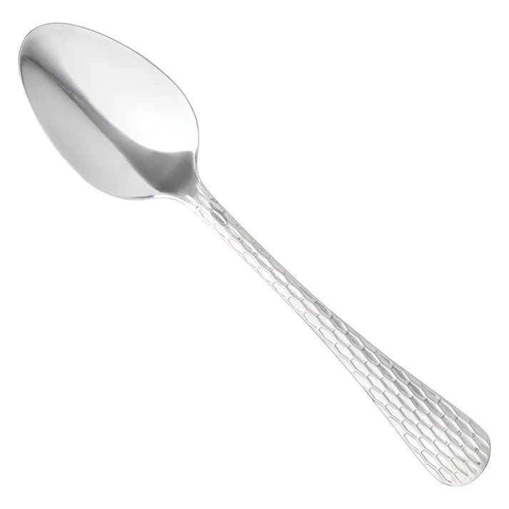 Create an elevated table setting with this commercial-grade 6.375" teaspoon, part of the Caspian flatware collection by Winco. This teaspoon features a small bowl making it ideal for tea or coffee service. The Caspian pattern invites light to dance across the hammered ripples, a versatile choice for any setting. Forged from stainless steel, this medium weight teaspoon is designed to withstand daily use in a commercial foodservice environment making it an ideal choice for hotels, cafes and restaurants. Each piece of the Caspian flatware collection is dishwasher safe for both residential and commercial dishwashers.