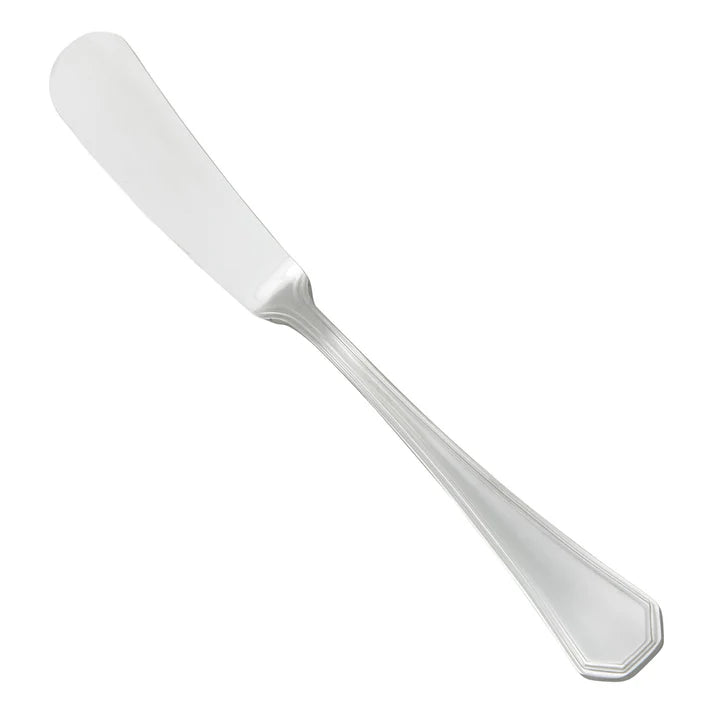 Create an elevated table setting with this commercial-grade 8" butter spreading knife, part of the Victoria flatware collection by Winco. This butter knife features a dull edge and round point specially designed to spread butter without tearing the bread. The Victoria flatware collection features simple aristocratic lines making it an ideal choice for a formal setting. Forged from heavy-duty stainless steel, this heavyweight butter spreading knife is designed to withstand daily use in a commercial foodservice environment making it an ideal choice for hotels, cafes and restaurants. Each piece of the Victoria flatware collection is dishwasher safe for both residential and commercial dishwashers. The elegant mirror finish is designed to last and is resistant to pitting or dulling, even after repeated washes.