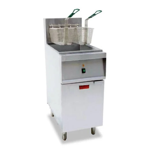 Omcan USA, 47331, (CE-CN-0040-208-3) Fryer, electric, floor model, stainless steel full pot, 40 lb. oil capacity, on/off switch, 12kW heating element, cold zone, includes (2) baskets, stainless steel front & galvanized sides. 208v/60/3-ph, 34 amps, cETLus, ETL-Sanitation (shipped on pallet)